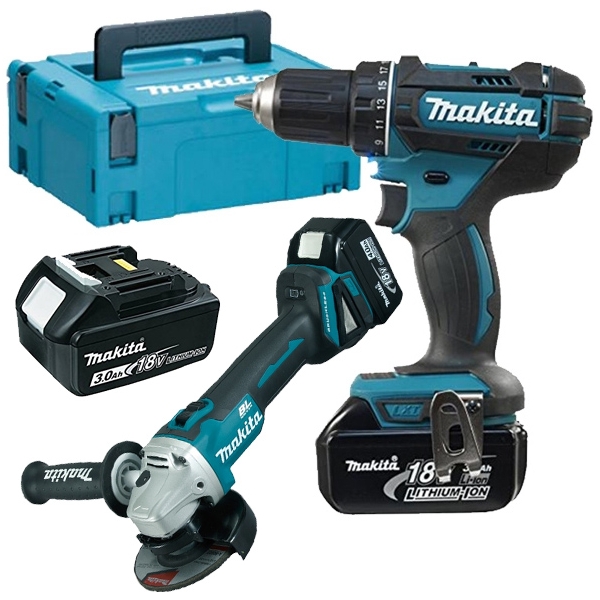 | Set de livrare | 1 x Makita - DDF482RFE3 - Masina de gaurit si insurubat, 62 Nm Agatatoare de curea 1 x Makita - DGA456Z - Polizor unghiular, 115 mm, motor fara perii Maner antivibratii Aparatoare disc Cheie de strangere Disc pentru degrosare 115 mm 3 acumulatori BL1830 18V si 3 Ah Incarcator rapid DC18RC Valiza de transport Makpac |