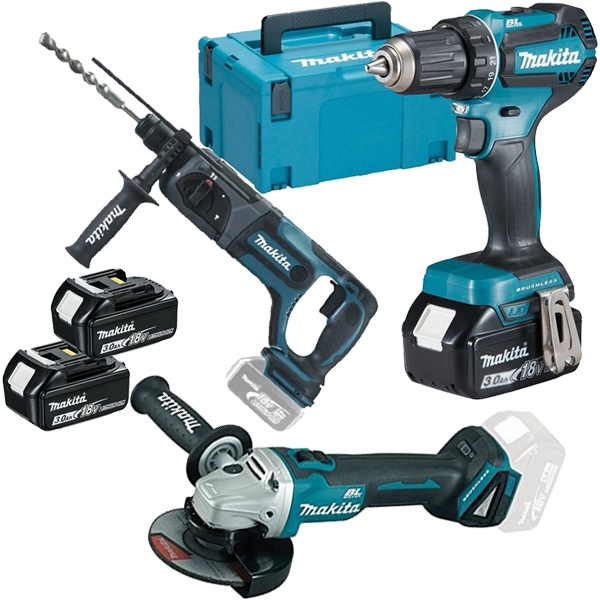 Pachet Makita DDF485RF3J + DGA504Z + DHR241Z- Masina de gaurit si insurubat cu 3 acumulatori