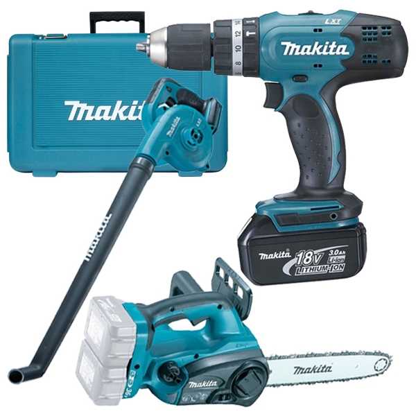| Set de livrare | 1 x Makita - DHP453SYE - Masina de gaurit si insurubat cu percutie, 42 Nm Bit combi Valiza de transport 1 x Makita - DUC302Z* - Fierastrau cu lant, 30 cm Lant de 30 cm Lama Aparatoare lama 1 x Makita - DUB183Z* - Suflanta de gradina Tub de suflare 2 acumulatori Li-Ion, 18 V si 1.5 Ah Incarcator standard DC18SD |