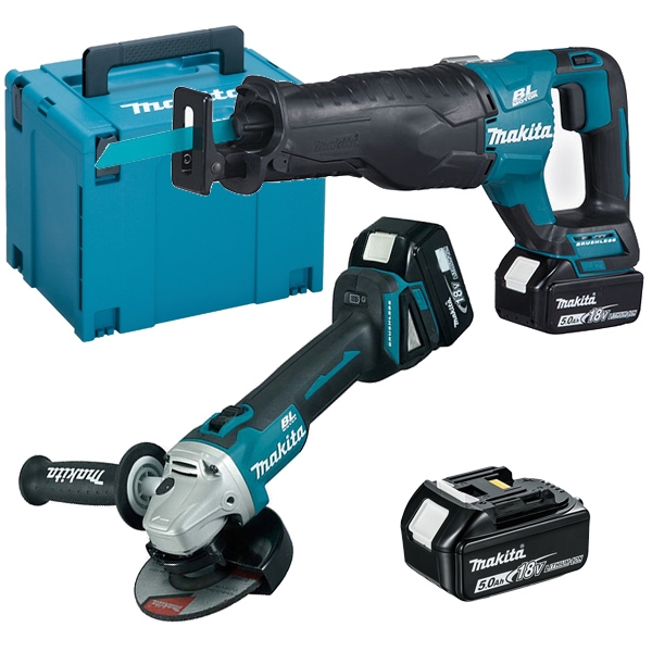 | Set de livrare | 1 x Makita - DJR187Z - Fierastrau sabie, motor fara perii Set panze (B-22, B-13, B-10) 1 x Makita - DGA504Z - Polizor unghiular, 125 mm, motor fara perii Maner lateral Aparatoare disc Cheie de strangere Disc pentru degrosare 125 mm 3 acumulatori Li-Ion, 18 V, 5 Ah Incarcator rapid Valiza de transport Makpac |
