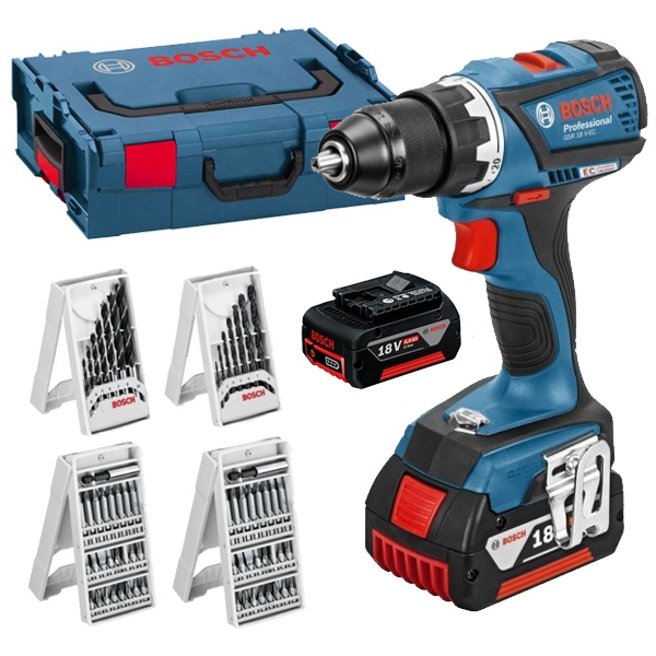 Bosch - GSR 18 V-EC - Masina de gaurit si insurubat cu 2 acumulatori, Li-Ion, 18 V, 4 Ah, 50 Nm, motor fara perii, led iluminare, valiza speciala, accesorii