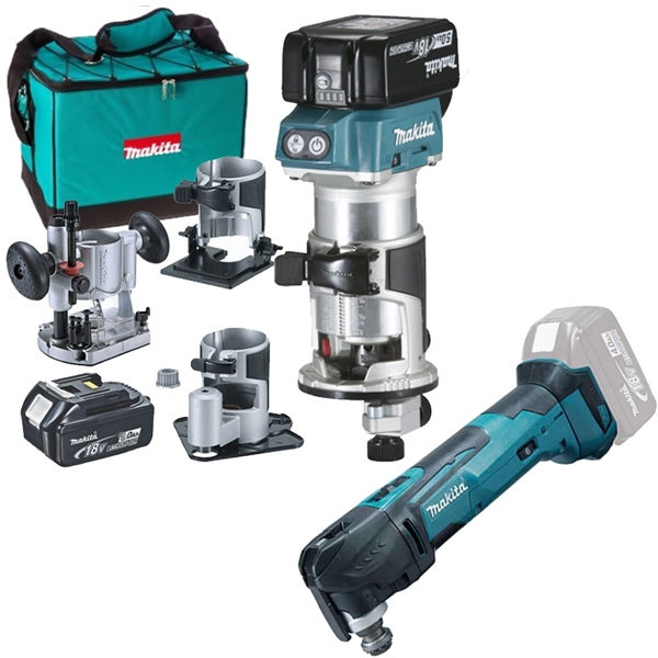 1 x Makita - DRT50RFEX3 - Masina de frezat cu 2 acumulatori, Li-Ion, 18 V, 3 Ah, 6, 8 mm, motor fara perii: