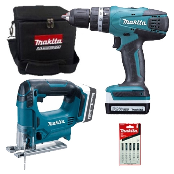 | Set de livrare | 1 x Makita - HP347DWE - Masina de gaurit si insurubat cu percutie, 30 Nm 1 x Makita - JV143DZ - Fierastrau pendular Set panze 2 acumulatori BL1415G Tip G 14.4 V, 1.3 Ah Incarcator DC18WA Geanta textila |