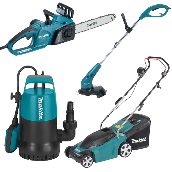 | Set de livrare | 1 x Makita - UC3541A - Fierastrau electric cu lant Lant Aparatoare sina Sina de ghidare 1 x Makita - PF0300 - Pompa sumersibila 1 x Makita - UR3000 - Masina de cosit, 450 W, 300 mm, cap cu fir Aparatoare Ham simplu Ochelari protectie 1 x Makita - ELM3311 - Masina de tuns iarba, 1100 W, 33 cm, 27 l Cheie pentru cutit Cutit 33 cm Cos pentru iarba |