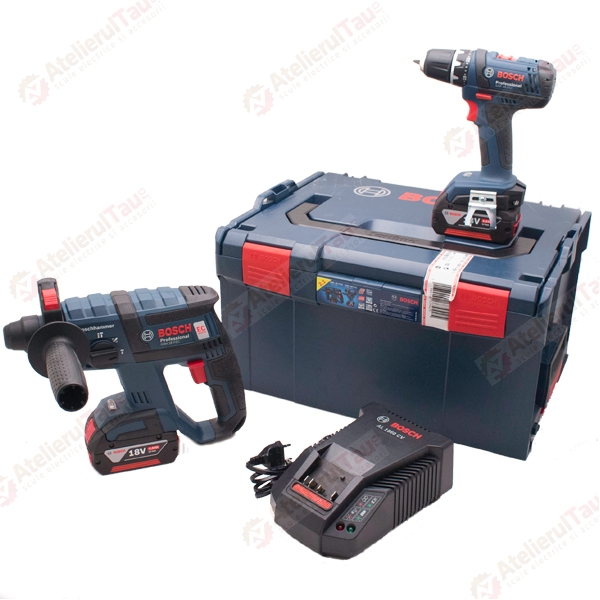 Pachet promotional Bosch format din masina de gaurit si insurubat GSR 18-2-Li si rotopercutor cu 3 functii GBH 18 V-EC