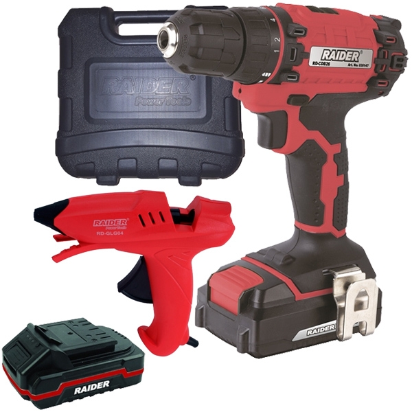 1 x Raider - RD-CDB26 - Masina de gaurit si insurubat cu 2 acumulatori, Li-Ion, 18 V, 2 Ah, 45 Nm, motor fara perii, led iluminare, valiza plastic: