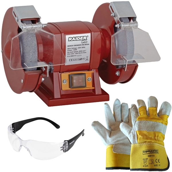 | Set de livrare | 1 x Raider - RDP-BG04 - Polizor de banc, 250 W, 150 mm, monofazat 2 discuri 1 x Topmaster - 561403 - Ochelari de protectie, lentile incolore 1 x Topmaster - TMP-PG02 - Manusi, marime 10, piele de vitel si material textil |