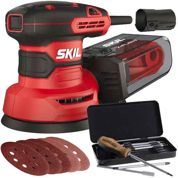 | Set de livrare | 1 x Skil - 7471 AA - Slefuitor cu excentric, 300 W, 125 mm, sistem antivibratii, turatie reglabila 5x foi de slefuire Caseta pentru praf X-Flow Adaptor pentru aspirator 1 x Felo - Smart - Set surubelnite cu profil PH, PZ, plat si tubular, 7 bucati |