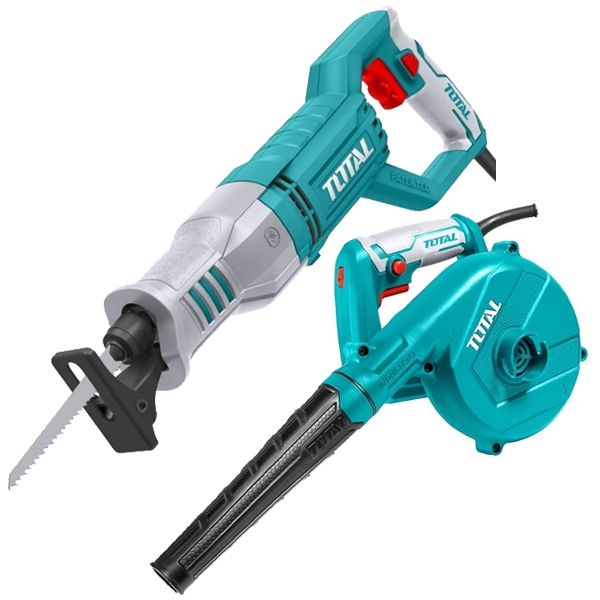 | Set de livrare | 1 x Total - TB2066 - Suflanta de gradina, 600 W, 210 m3/h, functie de aspirare, turatie reglabila Sac de praf 1 x Total - TS100806 - Fierastrau sabie, 800 W 1 x lama metal 1 x lama lemn |