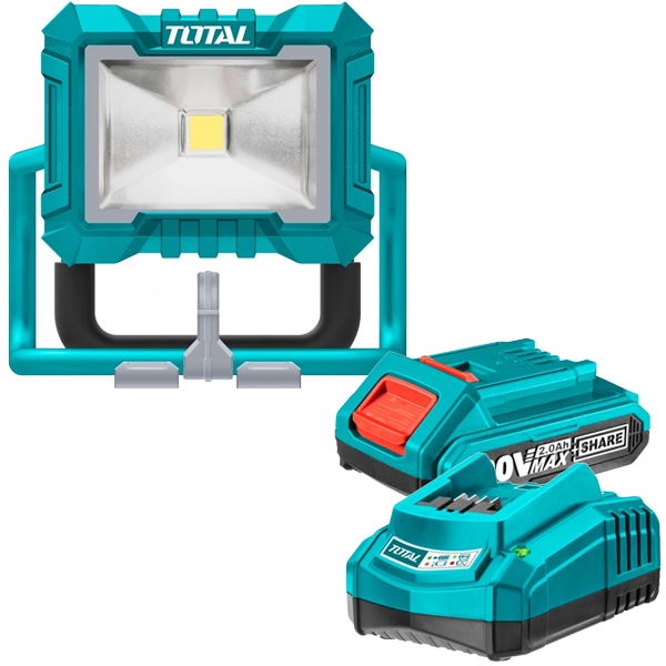 | Set de livrare | 1 x Total - TFLI2002 - Lampa fara acumulatori, Li-Ion, 20 V, - Ah - 1 x Total - TFBLI2001 - Acumulator, Li-Ion, 20 V, 2 Ah, indicator nivel incarcare 1 x Total - TFCLI2001E - Incarcator acumulatori Li-Ion, 20 V, incarcare rapida |
