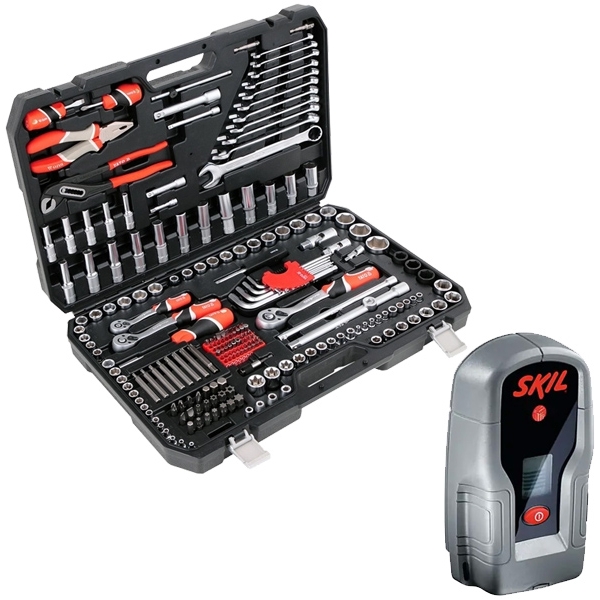 Cod unic produs: Pachet - Yato + Skil - YT-38941 + 0551 AB - Trusa scule de mana mixta, 225 bucati + Detector de metale cu baterii alcaline, 30 mm