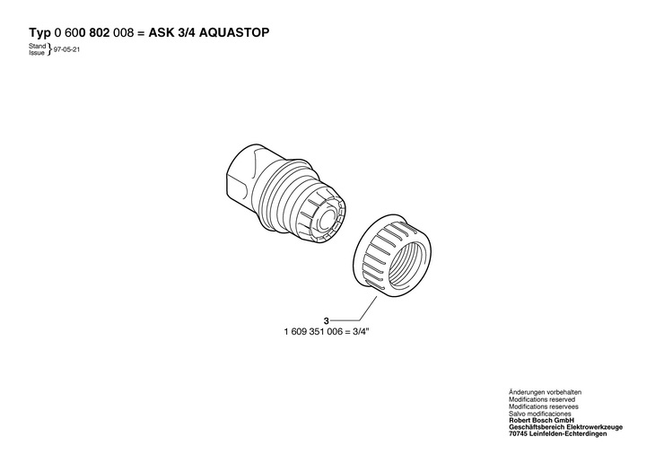 CUPLAJ FURTUN (0600802008) ASK 3/4 AQUASTOP / 0 V /