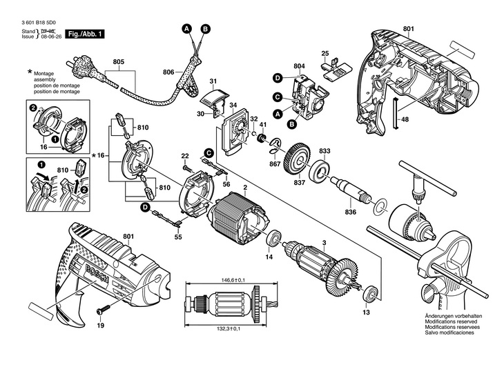 MASINA DE GAURIT PERCUTIE (3601B185D0) GSB 16 RE / 127 V /BR