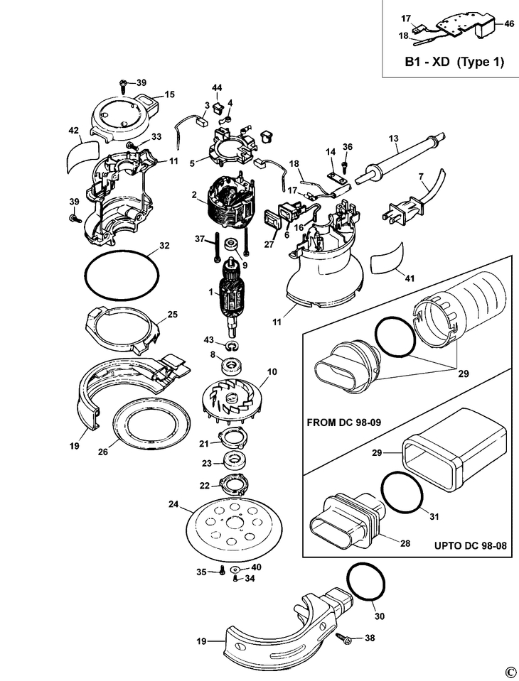 DW421 RANDOM ORBIT SANDER Type 1-2