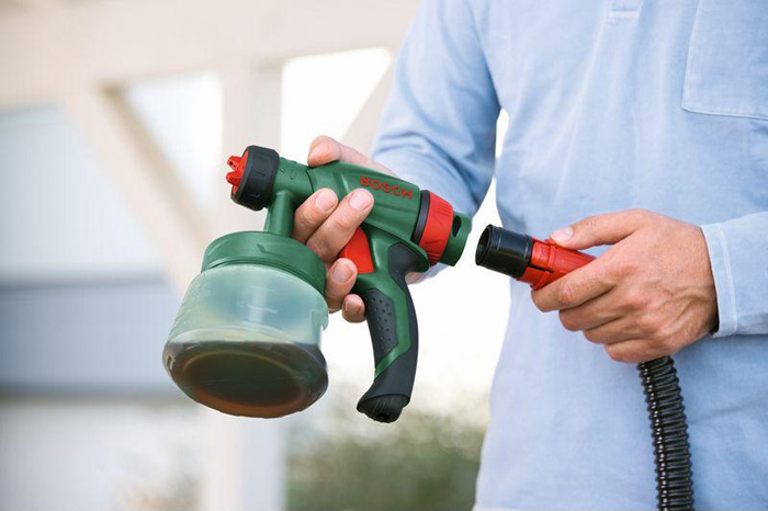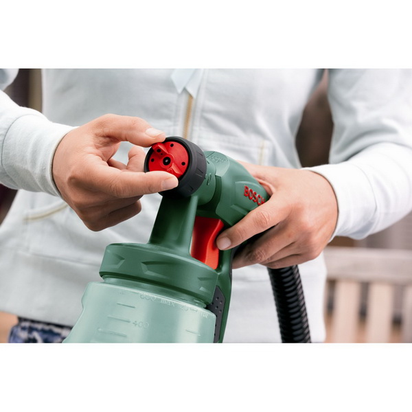 Datorita sistemului Bosch SDS Quick, puteti schimba recipientul pulverizatorului foarte usor: schimbari de vopsea mai rapide si curatare usoara.