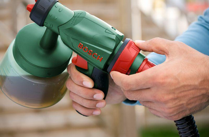 Intocmai ca toate sistemele de pulverizare Bosch, PFS 65 va permite sa aplicati perfect nu numai vopsea, ci si multe alte substante cu rezultate impresionante fara a fi necesar un timp indelungat de pregatire: majoritatea substantelor precum vopselurile de ulei, conservantii de lemn, lacurile si baiturile pot fi pulverizate fara a fi diluate; daca folositi alte substante, precum vopseaua emulsionata, grund sau email, tot ce trebuie sa faceti este sa adaugati putin diluant cum ar fi apa sau solvent.