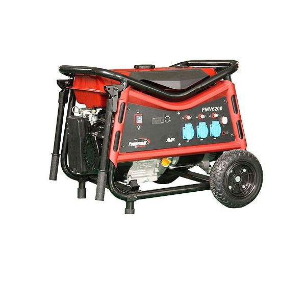 PMV 6200 este un generator de curent monofazat, portabil, montat pe un cadru tubular de protectie si manipulare, actionat de un motor termic pe benzina cu pornire manuala, la sfoara