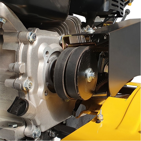 Sistemul ambreiaj este foarte flexibil si fiabil, cu cablu si rola intinzator + 2 curele dintate cu racire. In cazul in care freza este supusa la rezistente foarte mari (pamant foarte dur, radacini, pietre, sau alte obstacole) sistemul de ambreiaj cu curele atenueaza considerabil socurile suferite de motor sau de cutia de viteze. In acest fel fiabilitatea motocultorului creste considerabil.