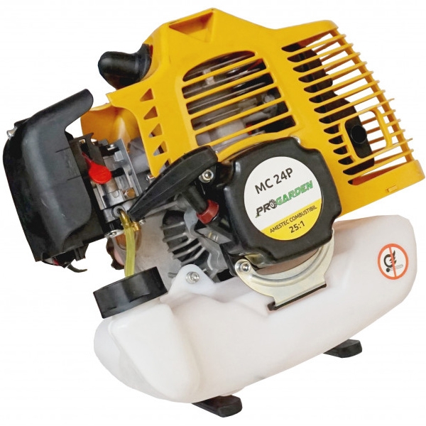 Motocoasa cu motor pe benzina Progarden MC24P este destinata taierii gazonului si suprafetelor mici cu iarba sau vegetatie moale din gradini si de-a lungul marginilor gradinii, daca este echipat cu dispozitivul de taiere corespunzator.