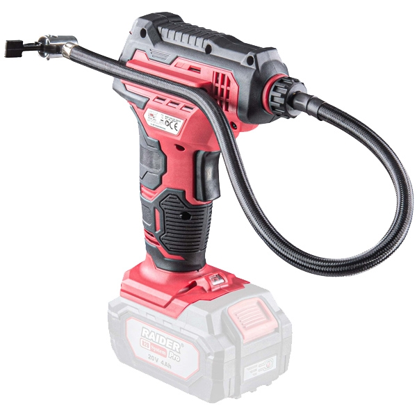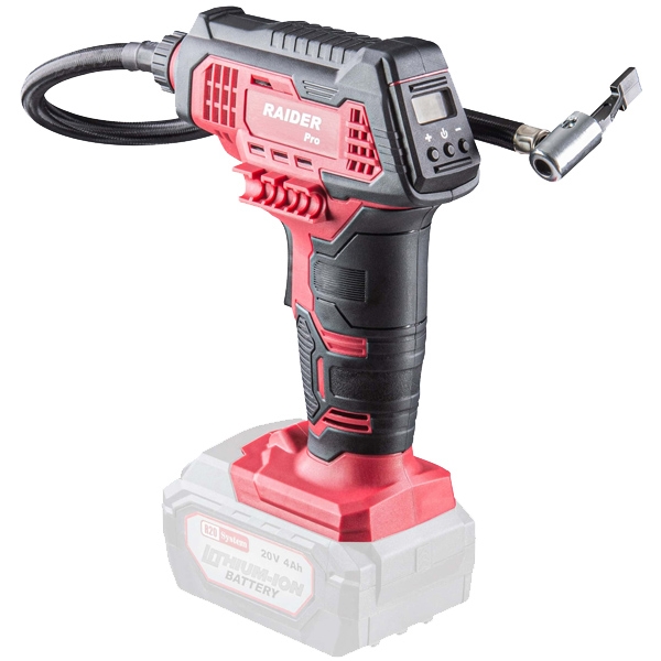 Mini compresor Raider RDP-SAC20 cu ecran LCD si mecanism de prindere a duzei pompei.