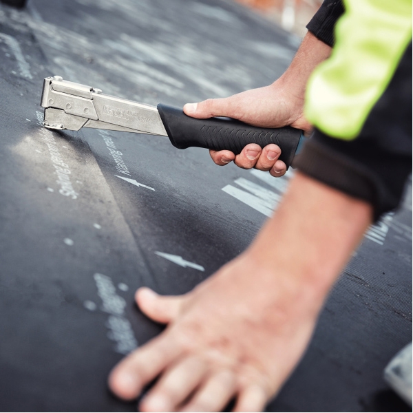 Solutia perfecta pentru prinderea materialului de acoperis si izolatie, strat rezistent la umezeala, folie de plastic, etichete sau postere.