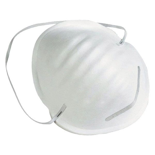 Semimasca de protectie de unica folosinta, cu banda metalica in zona nasului si elastic, pentru o fixare cat mai buna pe fata.