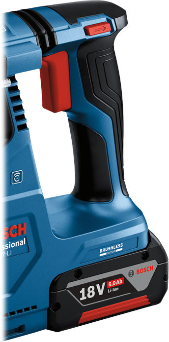 GBH 187-LI Professional este un campion al eficienţei când este vorba de viteza de găurire şi numărul de găuri per încărcare a acumulatorului datorită motorului său fără perii şi mecanismului optimizat. Funcţia pentru viteză constantă menţine în permanenţă viteza de găurire. Ciocanul rotopercutor cu acumulator poate fi ţinut mai confortabil datorită designului său în formă de L. Acesta oferă funcţii precum Vibration Control şi KickBack Control pentru a lucra cu un raport excelent preţ-performanţă. Interfaţa HMI uşor de citit afişează nivelul de încărcare a acumulatorului şi îi permite utilizatorului să aleagă între modul automat şi modul favorit predefinit în aplicaţia BeConnected.