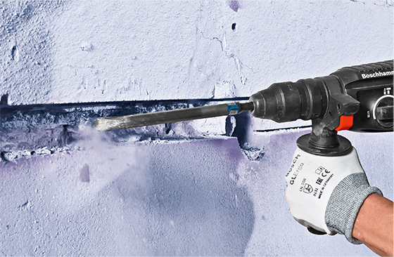 Aplicații de dăltuire ușoară (ex. fantă pentru cablu)Ciocanul rotopercutor este echipat cu funcție de oprire a rotației care permite utilizatorului executarea aplicațiilor de dăltuire |