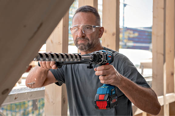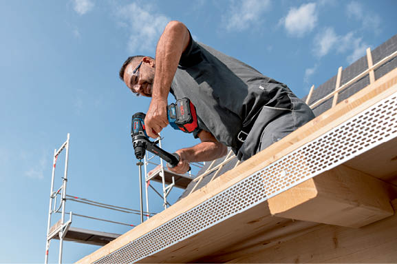 GSR 18V-150 C Professional oferă rezultate optime la înşurubarea şi găurirea în lemn şi metal, în special pentru realizarea de găuri cu diametre mari, de exemplu, fierăstraie pentru găurire de până la 102 mm.
