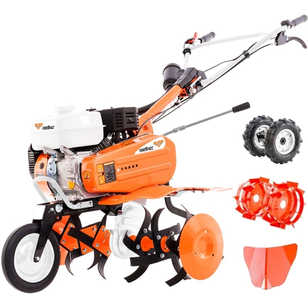 Motosapa RURIS 7009ACC dispune de o cutie de viteze in doua trepte inainte si una inapoi. Prin acest model, RURIS pune la dispozitia clientilor o motosapa puternica si eficienta pentru maruntirea solului din solarii sau gradini. In mai putin de 30 minute, o suprafata de 500mp este gata de insamantat sau pregatita pentru plantat. Pentru a lucra eficient in zonele inguste, aflate la capatul de rand din solarii sau gradini, motosapa se poate intoarce prin actionarea cutiei de viteze pe mersul inapoi. Suplimentar, motosapa RURIS 7009ACC are un cuplu de transmisie cu 25% mai mare fata de utilaje in gama de putere cuprinsa intre 5.5 CP si 7 CP. Astfel, utilizatorul beneficiaza de motosapa RURIS cu un cuplu marit, la un consum constant de 1 litru benzina/ora.