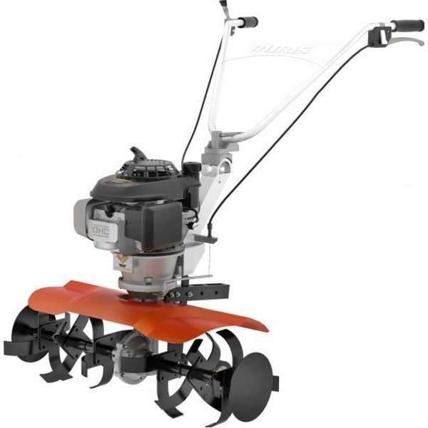 Motocultor Ruris, 731K cu roti cauciuc si rarita este puternic si eficient pentru operatiile de frezare si maruntirea solului, datorita frezelor cu latime reglabila cuprinsa intre 560 si 830 mm.