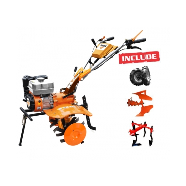 Posibilitatea folosirii cu mai multe tipuri de accesorii antrenate mecanic - avand priza dubla si 2 axe cu turatii diferite: primul ax are turatia nominala a motorului, iar cel de-al doilea o turatie diminuata.
