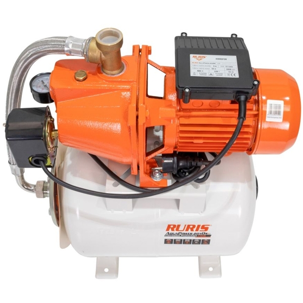 Hidroforul RURIS AquaPower 2010S este echipat cu o pompa al carui corp este din fonta, un vas de expansiune de 24l, comutator de presiune, manometru pentru verificarea presiunii si un furtun flexibil.