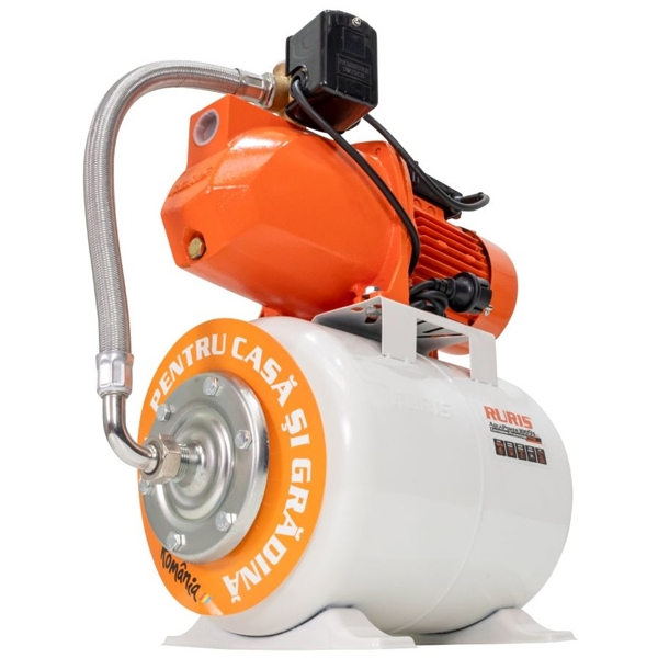 Hidroforul RURIS AquaPower 3009S este echipat cu o pompa al carei corp este din fonta, un vas de expansiune de 24l, comutator de presiune, manometru pentru verificarea presiunii si un furtun flexibil.