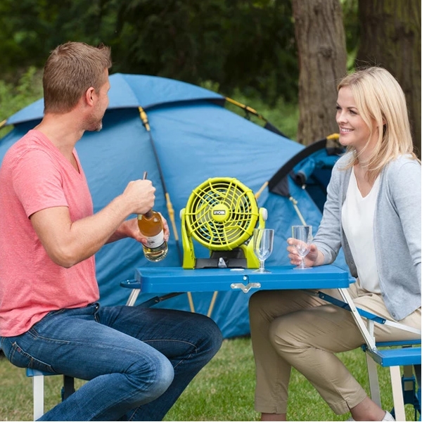Ventilatorul cu acumulator este ideal pentru utilizare in interior sau afara, este compact si portabil cu maner pentru transport incorporat.