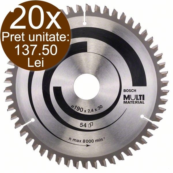 Pachet 20x Bosch - Multi Material - Panza fierastrau circular, multimaterial, 190x30x2.4 mm, 54 dinti