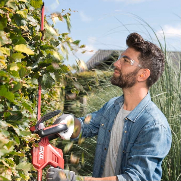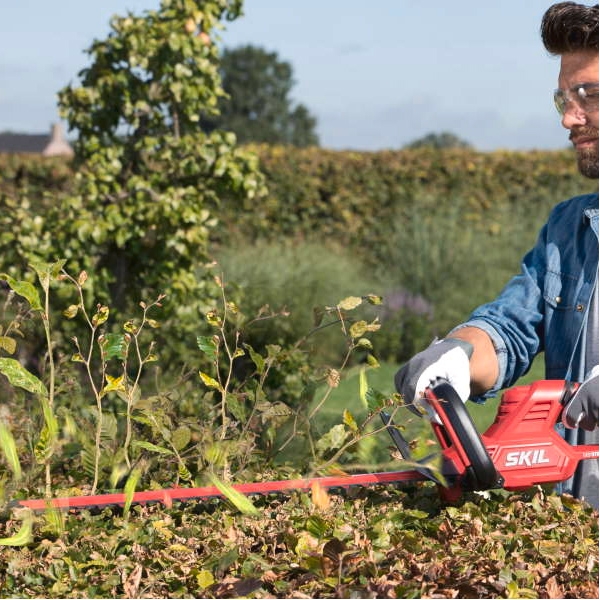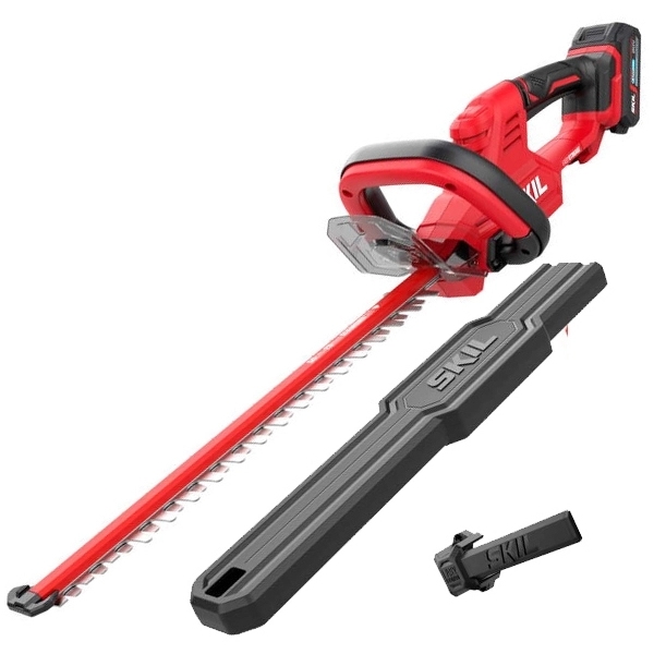 SKIL 0429 este o foarfeca de tuns gard viu cu acumulator, dotata cu o lama de 50 cm pentru tunderea gardurilor vii si arbustilor. Taierea ramurilor groase nu reprezinta o problema pentru SKIL 0429, avand o distanta intre dintii lamei de 20 mm si functie de ferastrau la primii dinti ai lamei. Designul ergonomic cu maner posterior din material moale si maner secundar practic asigura confort optim in timpul lucrului.