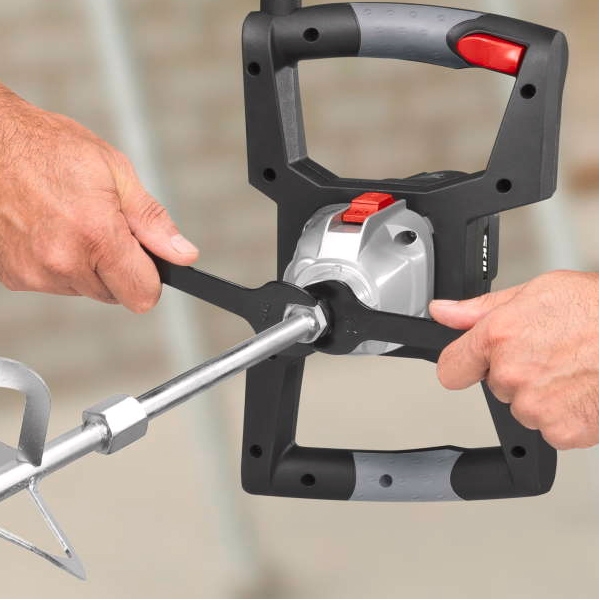 Mixerul dispune de o carcasa de aluminiu al angrenajului, care creste durabilitatea uneltei. Constructia ergonomica a mixerului, cu maner moale, asigura manuirea confortabila a acestuia pe timpul lucrarii de mixare. Mixerul este livrat cu padele de amestecare detasabile, universale, de inalta calitate, de 120 mm, ideale pentru mixarea unei game de materiale, ca mortarul, tencuiala si adezivii.