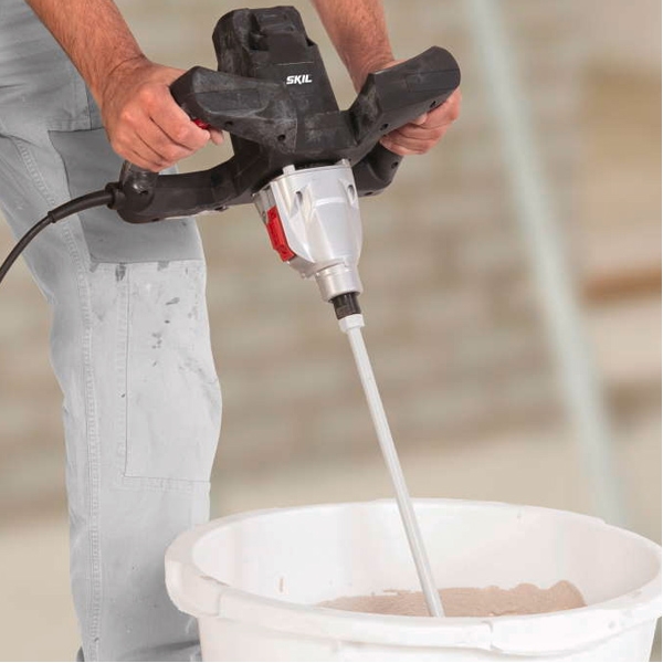 SKIL 1613 are un maner care permite prinderea cu doua maini, permitand manuirea cu ambele maini a mixerului, pentru controlul optim al lucrarii. Cu motorul puternic de 1400 W, acest mixer este ideal pentru mixarea unei game largi de materiale, cum este mortarul, tencuiala cimentata si adezivi pentru faianta. Controlul electronic asigura pornirea lenta si viteza constanta, si protejeaza sistemul impotriva supraincarcarii. Puteti schimba cu usurinta padelele de amestecare normal, multumita prinderii standarde M14.