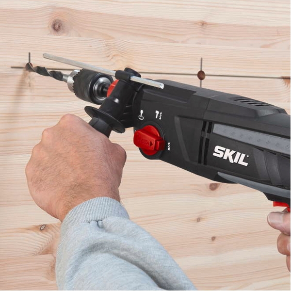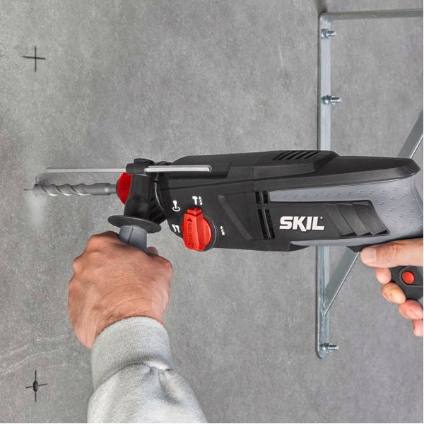 Acest rotopercutor SKIL 1763 cu patru functii este echipat cu motor foarte puternic, de 1010 W, care asigura lucrul fara efort. Este foarte multilaterala, datorita celor patru functii diferite. Acest rotopercutor este echipat cu un mecanism de percutie puternic, pentru gaurirea in beton de pana la 26 mm, o oprire a percutiei, pentru gaurire si insurubare obisnuita si o oprire a rotatiei, pentru lucrarile de daltuire usoara. Ca ultima, dar nu mai putin importanta functie, cu aceasta masina de gaurit este posibila daltuirea cu rotatie libera. Sistemul SDS+ faciliteaza schimbarea rapida si simpla a accesoriilor. Turatia variabila cu viteza pre-selectabila ofera caracterul multilateral si controlul lucrarilor. Acest rotopercutor se livreaza impreuna cu un maner lateral moale si cu un sistem de reglare a adancimii.