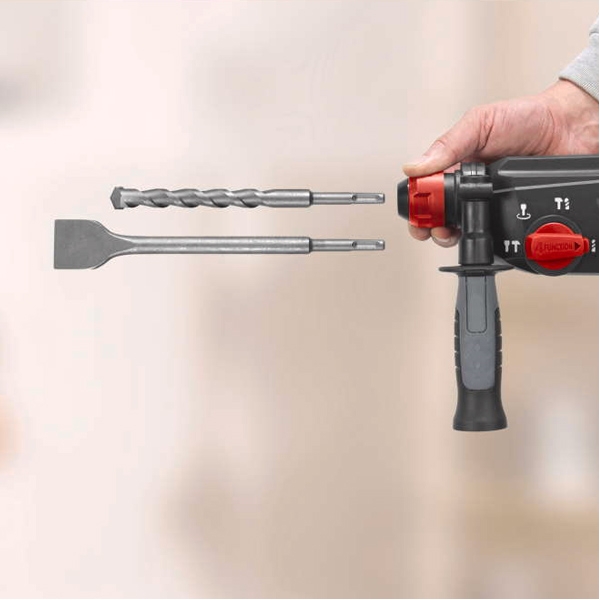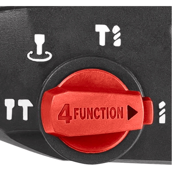 Rotopercutor cu 4 functii: 1. Gaurire cu percutie; 2. Functie de oprire a rotopercutorului pentru lucrari obisnuite de gaurire; 3. Oprire rotatie pentru lucrari de daltuire usoare; 4. Daltuire cu rotatie libera pentru o libertate maxima de miscare.