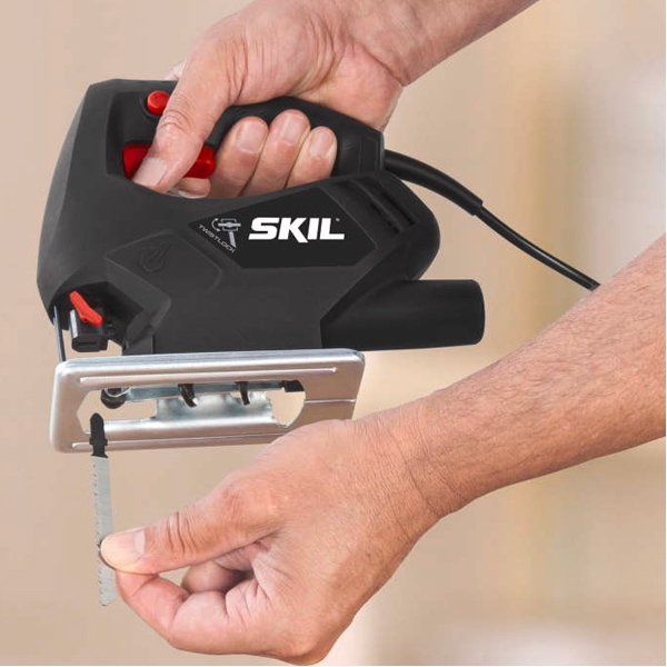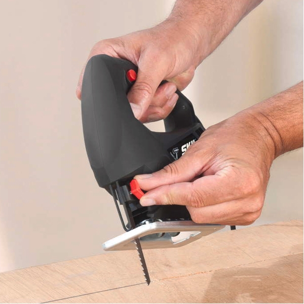 Puteti regla viteza de taiere folosind discul de reglaj, pentru obtinerea rezultatelor optime in diferite materiale. SKIL 4250 este, de asemenea, adecvat pentru taiere in linie dreapta si curbate. Se poate utiliza pentru a taia in parchet laminat, grinzi, tuburi, etc. Talpa reglabila permite efectuarea taierilor oblice, intr-un unghi maxim de 45° la stanga sau dreapta. Nu este necesara o cheie; puteti regla pur-si-simplu unghiul prin slabirea si strangerea suruburilor de sub talpa.