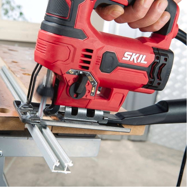 Pendularul 550 W SKIL 4530 este extrem de versatil. Este potrivit atat pentru taieri curbate, cat si pentru taieturi drepte in numeroase materiale. Selector de material cu patru setari va da posibilitatea sa gasiti intotdeauna viteza potrivita pentru lucrare. Comutatorul cu functie de turatie variabila va permite sa controlati viteza de taiere pentru rezultate optime. Sistemul fara unelte Clic permite schimbarea rapida a panzelor de ferastrau fara folosirea unor scule. Alte caracteristici utile includ suflanta de praf care ofera o vedere clara a piesei dvs. de lucru si comutatorul mare cu buton de blocare care permite o functionare continua. Placa de baza reglabila permite efectuarea taierilor intr-un unghi de 45 grade. Pentru asigurarea curateniei locului de munca, cele mai multe aspiratoare casnice uzuale se pot conecta la adaptorul de aspirare. Mai mult, designul ergonomic cu maner moale asigura un plus de confort la lucru. SKIL 4530 AA este furnizat cu o panza de ferastrau pentru lemn, o panza de ferastrau pentru taierea elementelor curbate si un adaptor pentru aspirator.