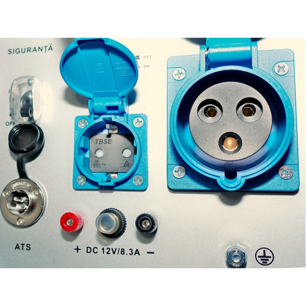 Generatorul este dotat cu doua prize monofazate cu capac de protectie si priza de 12 Vcc pentru aplicatii usoare sau redresat acumulatori.