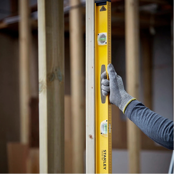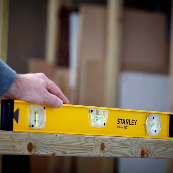 Nivela I-Beam grade Stanley 1-42-923 cu 3 fiole: orizontala, verticala si o fiola rotativa la 180 grade.
