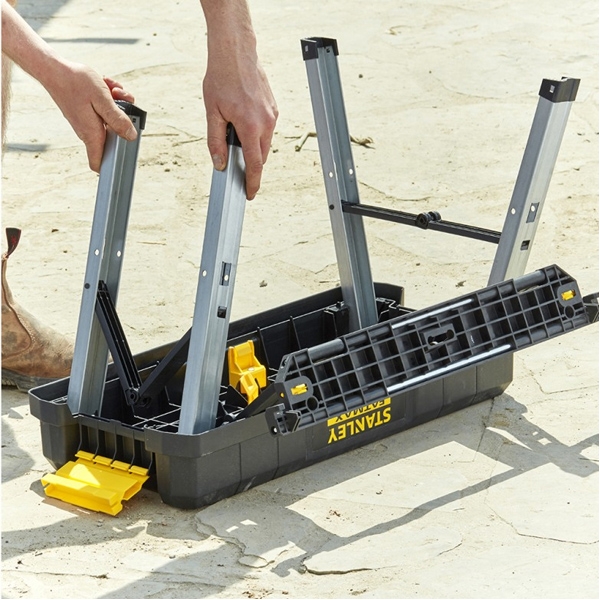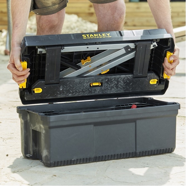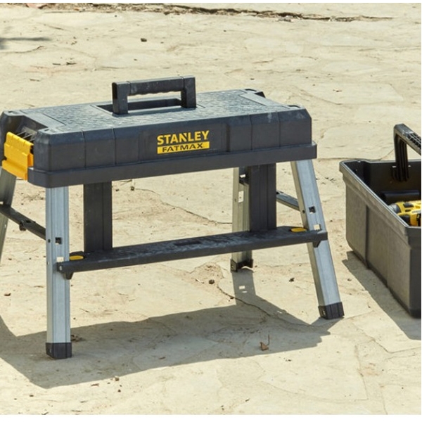 Cutia pentru scule Stanley cu scara - FMST81083-1 are un design inovator, avand 3 functii: depozitare, lovire si transportare.