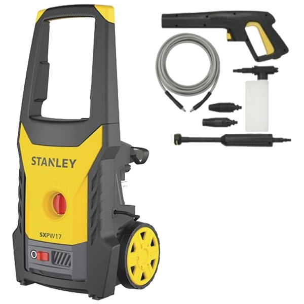 Masina de spalat cu presiune Stanley 1400 W 110 bar 390 l/h - SXPW14E este dotata cu maner si roti de transport, supapa de siguranta automata, pompa cu 3 pistoale axiale, placa oscilanta si filtru de apa.