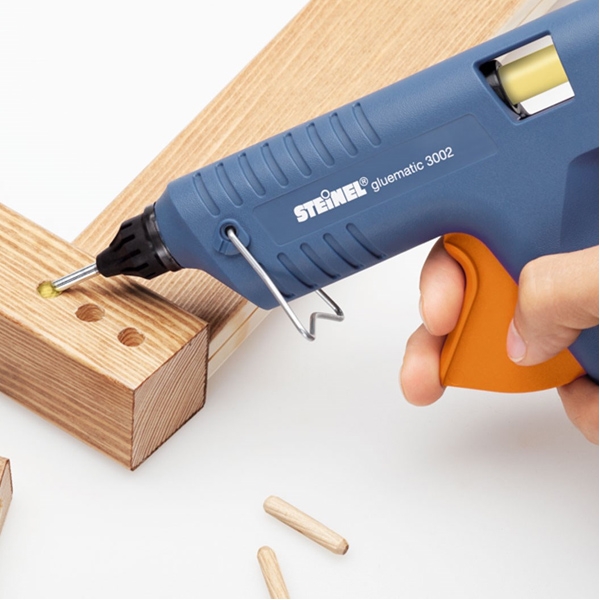 Pistolul de lipit electric Gluematic 3002, ideal pentru lipiri in activitati casnice sau mestesugaresti, reparatii, hobby, bricolaje sau reparatii. Pistolul de lipit se foloseste pentru lipire hartie, carton, mucava, lemn, piatra, metal sau material plastic.