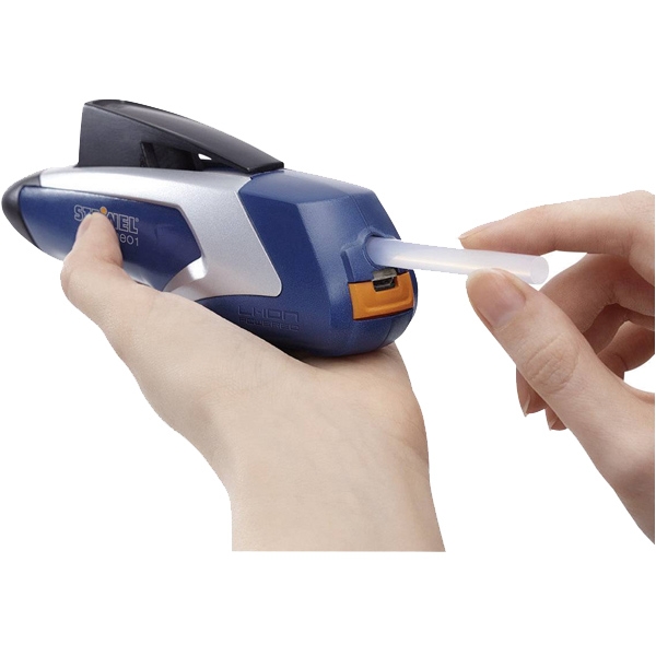 Batonul de adeziv se introduce in aparatul de lipit prin partea posterioara. Aparatul de lipit genereaza o temperatura de aprox.170°C, sub actiunea careia, adezivul este incalzit pana la topire, fiind directionat, in forma lichida, catre duza de lipire a aparatului de lipit. Este cel mai eficient mod de lipire, intrucat adezivul fierbinte are aderenta mare pe orice material si prin intarire nu lasa loc la erori in procesul de lipire. Lipirea este curata si se intareste imediat. Zona lipita poate fi supusa la solicitari dupa numai 2 minute.