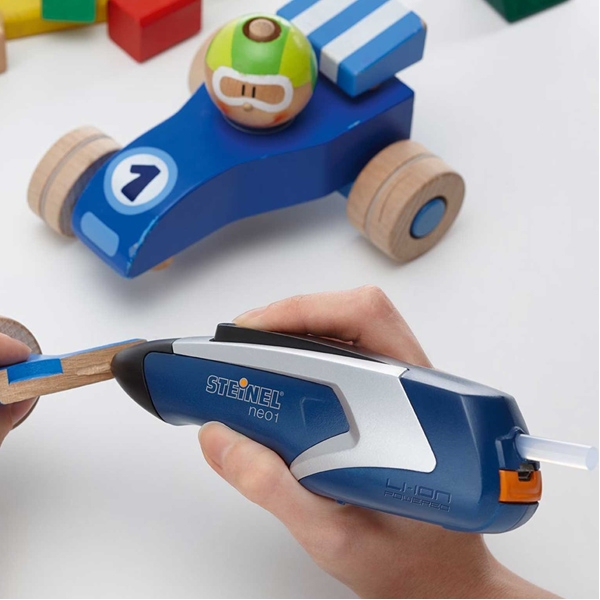 Pistol de lipit la cald tip creion de lipit NEO 1 pentru lipire cu batoane de adeziv (baghete de lipire). Pistol de lipit la cald NEO 1 fara cablu, usor de manipulat, pregatit pentru lipire in doar 15 secunde. Pistol de lipit universal, pentru lipiri curate si precise, indicat pentru lipire lemn, metal, plastic, ceramica, textile.